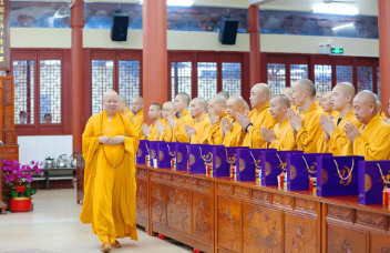 2024年8月18日,甲辰年农历七月十五,深圳弘法寺全体僧众,齐集大雄宝殿,谨依佛制,举行解夏自恣。全寺僧众作对首羯摩法,众比丘依次问答,比...