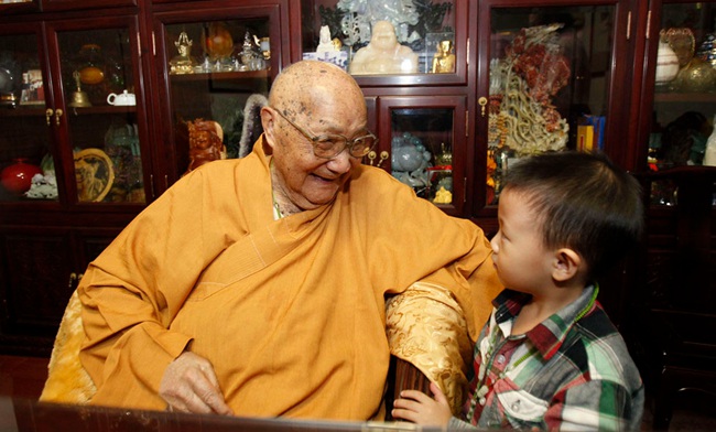 我们请他谈老年人的健康,本老打趣地说,我是个小和尚,一百岁的小和尚,那敢谈老年人的身心健康。他用睿智的佛教语言,潜意识地告诉我们,人活着就要好好地保持身心健康,特别是心理的健康,好心情才是健康的基石。好一个一百岁的小和尚这正是好心情的表现。本老每天都要接访众多的信众,无论高官还是普通百姓,他都用好心情对待之,详和、欢快、愉悦,在他的方丈室总是笑声不 断。与本老交谈总能从中受到启发,吸收教益,得到愉快,获得定力,裨益匪浅!