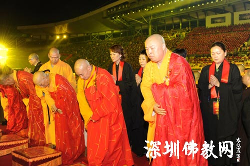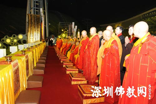 中国佛教协会会长一诚长老、中国佛教协会咨议委员会副主席惟贤长老、中国佛教协会副会长净慧长老、澳门佛教总会会长健钊长老、山东佛教协会会长明哲长老、山西佛教协会副会长妙江法师、二祖寺方丈绍云长老、云南佛教协会副会长东宝·仲巴仁波切、觉光长老、香港宝莲寺方丈智慧长老、广东省佛教协会会长民生法师、广东佛教协会副会长宏满法师、深圳佛教协会会长印顺法师、中国佛教协会常务理事心印法师、广东佛教协会副会长宏满法师、等来自两岸四地的十八位法师参加弘法寺举行的千僧祈福法会,祈福国泰民安。