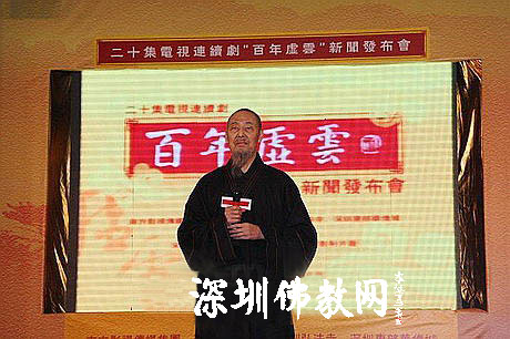 一部讲述中国近代著名禅门宗师虚云长老传奇人生的20集电视连续剧《百年虚云》将于11月6日在广东珠江电影频道首播。10月29日,该连续剧在广州举行新闻发布会,国家宗教局、广东省政协、省民族宗教事务委员会、南方广电传媒集团、珠江电影集团等单位领导出席本次发布会。该剧以中国近代禅宗泰斗虚云长老一生为蓝本,李起厚、斯琴高娃等主演。昨日,李起厚等主演为该剧在广东首播宣传造势。