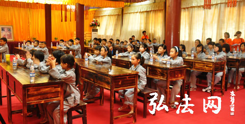 弘法寺历来非常重视文化建设,国学教育是弘法寺文化建设的一个重要的组成部分。举办国学少儿夏令营就是要孩子们学会在当下用功,传承中华传统美德。为了办好国学夏令营,弘法寺从总体的安排到课程的设置,都做了细致的考量。夏令营的教课老师都是志愿者,他们是有国学教育经验、有爱心的教育工作者。印顺大和尚还为小营员们安排了有经验的义工做为生活辅导老师,悉心照顾孩子们的生活和户外活动。还有安排法师带领营员早课,礼佛,教唱佛曲,还有关爱生命的放生活动,从细微之处帮助孩子们学会与人为善,孝亲尊师,友善地对待身边的每一个人,很好地培养了孩子们的恭敬心与爱心。