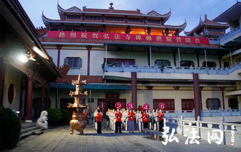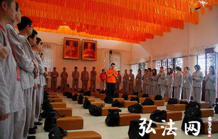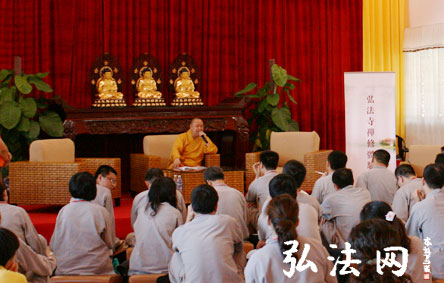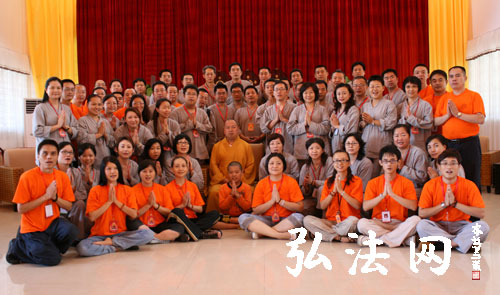 弘法网讯:刚结束了连续四期的儿童夏令营,弘法寺又迎来了一批社会成功人士参加的禅修体验营。50余位来自深圳市内各银行、证券、企业的高层管理人员,于2010年9月3日至5日的禅修体验之旅,不仅学习到佛门礼仪和佛学知识,还有幸聆听了禅宗高僧104岁的本焕长老契机宣法,如沐佛光,大家受益匪浅。