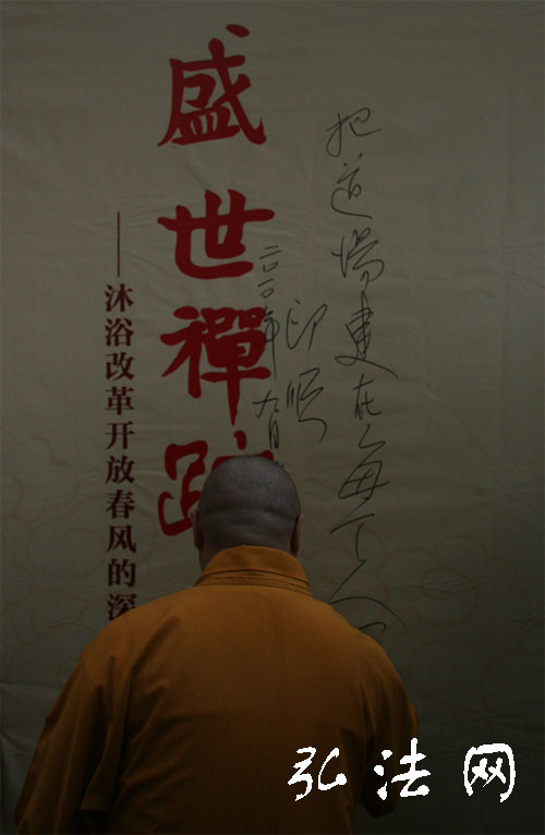 金色的十月,金桂飘香。在这金色的收获季节,适逢深圳特区改革开放三十周年,我们迎来了深圳弘法寺对外开放20周年,本焕长老诞辰104周年庆典,今天以爱国爱教为主题的《盛世禅踪——沐浴改革开放春风的深圳弘法寺》展览又开幕剪彩,我们举院同庆,和合同喜。