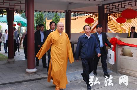 10月27日下午,罗湖区委书记刘学强、区长倪泽望及区民宗局领导一行前往弘法寺,向104岁的本焕长老送上生日祝福。