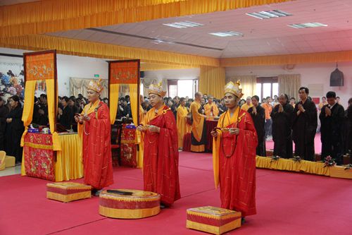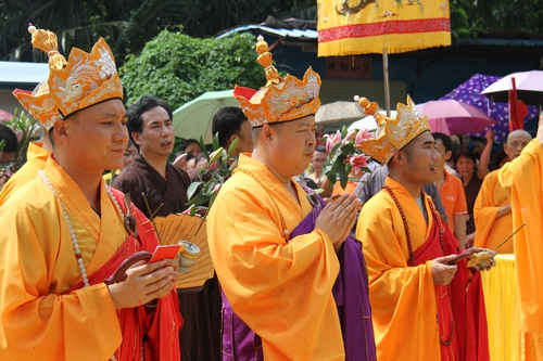 20日中午12:30,在大斋胜会即将圆满之际,内坛举行了上圆满供、烧圆满香,愿将此间所进行的佛事之无量功德,回施法界一切群灵,忏悔业障,勤发四十八大愿,往生净土。随后奉请五位判官将判疏送往十方各界,宣说水陆法会功德圆满。