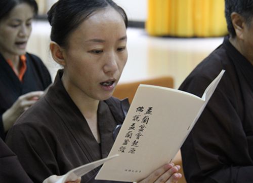 是日上午8点起,弘法寺在大经堂内启建盂兰盆节法会,法会期间大家恭诵《佛说盂兰盆经》及其仪轨。