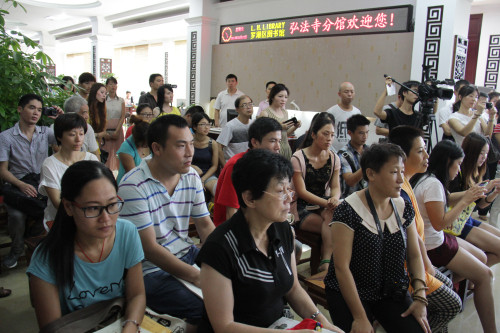 弘法网讯:2013年8月25日下午2:30,由深圳市罗湖区图书馆、弘法寺佛学院、深圳市儒家文化研究会共同举办的第四期静心读书会于罗湖区图书馆弘法寺分馆举行。此期读书会邀请了“幸福国学”创始人、湖畔书馆创办人王扉作为主讲嘉宾,与大家分享主题“君子之交”,王扉老师的演讲才情四溢,受到了在场人士的热烈欢迎。