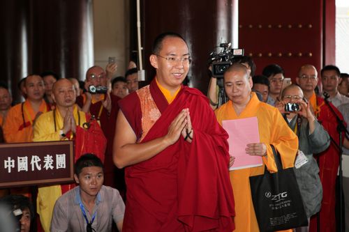 祈祷法会由中国佛教协会副会长学诚大和尚主持。首先是中方诵经,由中国佛教协会会长传印长老和副会长班禅额尔德尼·确吉杰布、祜巴龙庄勐共同主法,副会长明生大和尚宣读“和平祈祷文;韩国是由韩国佛教宗团协议会会长慈乘长老慈乘长老宣读“和平祈祷文”;日本由日中韩国际佛教友好交流协议会副理事长武觉超宣读“和平祈祷文”。三国佛教代表团分别按照佛教仪规诵经礼佛,共同祈祷佛日增辉、人民安乐、社会和谐、世界和平。