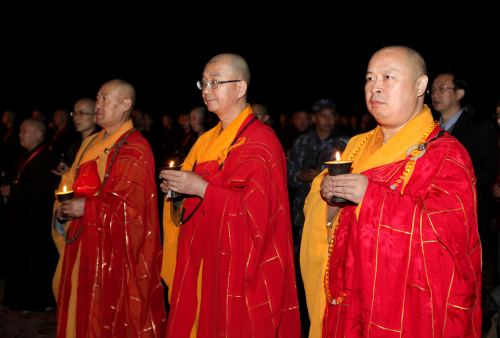 弘法网讯:2013年12月21日晚,尼泊尔中华寺与弘法寺共同在蓝毗尼圣园隆重举行传灯法会。中佛协副会长、弘法寺与中华寺方丈印顺大和尚,中佛协驻会副会长、北京龙泉寺与福建莆田广化寺方丈学诚大和尚,中佛协副会长、五台山碧山寺方丈妙江大和尚,以及120名接受三坛大戒的戒子们等数百人士参加了此次殊胜法会。