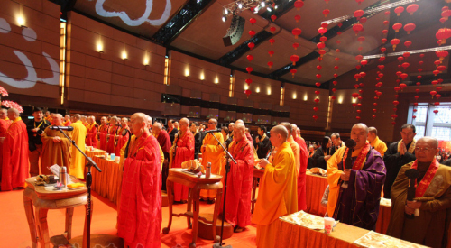 上午九时,法会礼请香港佛教联合会会长、香港观宗寺法主和尚觉光长老,台湾中国佛教会理事长净良长老,澳门佛教总会会长健钊长老,世界佛教僧伽会副会长、香港佛教僧伽联合会会长绍根长老,藏传佛教扬唐仁波切长老,中国佛教协会副会长、海南省佛教协会会长、弘法寺方丈印顺大和尚,香港佛教联合会执行副会长、香港西方寺方丈宽运大和尚,台湾中国佛教会副理事长心茂大和尚,香港佛教三德弘法中心主席净雄大和尚,隆辉大和尚,浙江碧岩禅寺住持体禅法师等108位大德法师共同主法。