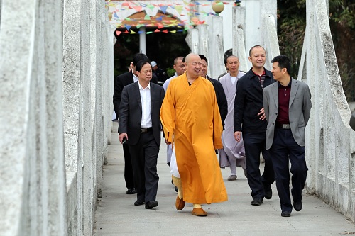 印顺大和尚陪同各位领导参观了弘源寺的寺内建设,并进入了深入探讨。随后,印顺大和尚陪同诸位领导一行人到石岩湖进行实地考察。对于弘源寺的建设规划,印顺大和尚充满信心,他说,建设好一座寺庙给人民所带来的利益不只是几十年的事,而是薪火相传持续下去为人民做大功德的事。弘源寺在近代几经战乱受到了毁灭性打击,如今在党和各级政府的大力支持和关心下、护法大德及十方善信鼎力护持下,重新修复重建,主体建筑日臻完善,今后,要继续发扬佛教慈善利生的传统,让深圳弘法寺与深圳弘源寺能齐头并进,在深圳南北呼应,走在时代的潮流之中,为全国佛教寺院树立榜样!