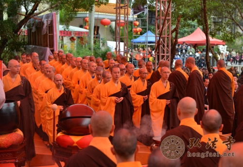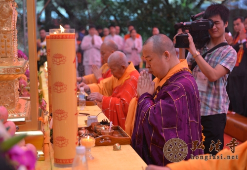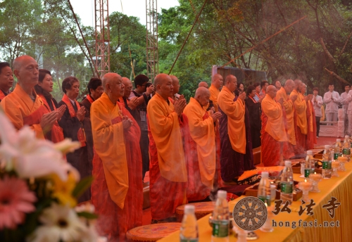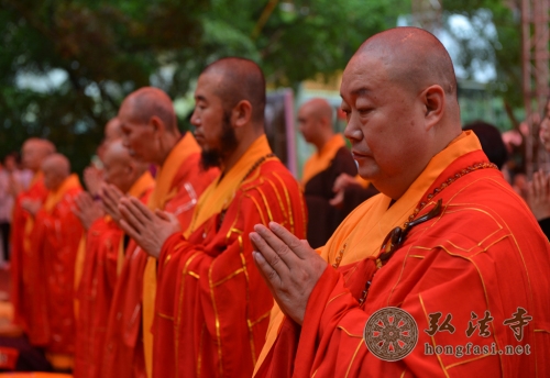 弘法网讯: 2014年4月2日下午3点,为纪念本焕长老圆寂两周年,弘法寺2014年清明思亲报恩水陆超度祈福大法会在弘法寺斋菜馆前广场盛大开坛。法会规模庞大、气势恢宏,来自全国各地法师与善信近五千人前来参加法会,表达对往生先人的孝思,亦为在世亲友祈福。