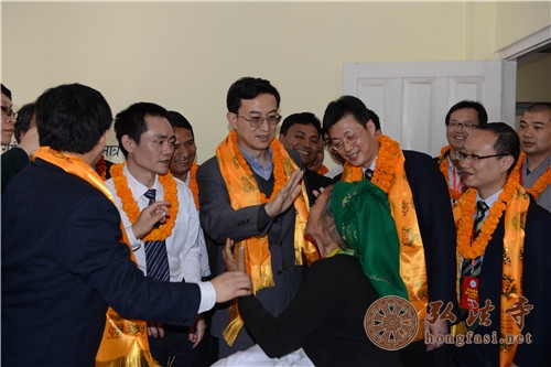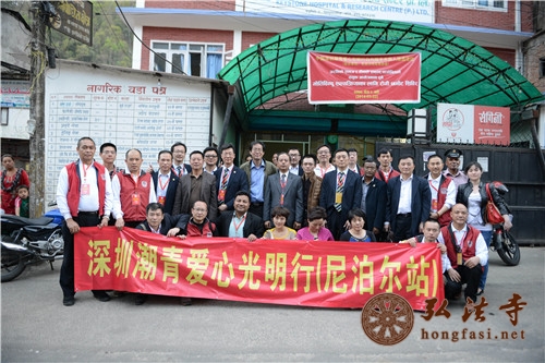 弘法网讯:2014年3月26日,中国佛教协会副会长、海南省佛教协会会长、尼泊尔中华寺及弘法寺方丈印顺大和尚在尼泊尔中华寺升座三周年之际,甴中国驻尼泊尔大使馆带领,尼泊尔中华寺、深圳潮青会、尼泊尔阿尼哥协会联合主办“爱心光明行”在美丽的山地王国——尼泊尔开展送光明慈善活动,免费为尼泊尔边陲小镇巴拉比斯地区的贫困白内障患者施行复明手术。中华人民共和国驻尼泊尔大使吴春太、中华寺当家中勇法师、及“深圳潮青会爱心光明行”常务副主席陈君尧、副主席董威霆、秘书长王君伟及姚晓明博士等医护人员、义工们的努力下,当天完成首批26例手术。