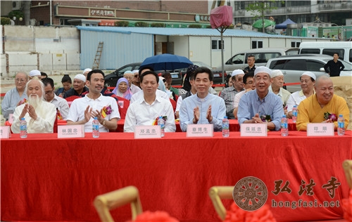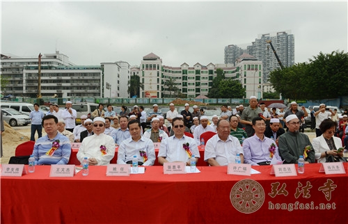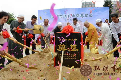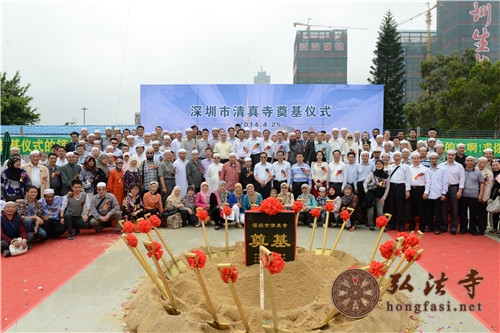弘法网讯:2014年4月25日上午,深圳市福田区梅林清真寺原址举行了新清真寺奠基仪式,现任中国伊斯兰教协会全国委员会委员、广东省伊斯兰教协会副会长、深圳市伊斯兰教协会会长魏达志主持了这次奠基仪式,深圳市委常委、市委统战部部长张思平,中国佛教协会副会长、海南省佛教协会会长、深圳弘法寺方丈印顺大和尚及相关领导嘉宾出席奠基仪式并作了讲话。