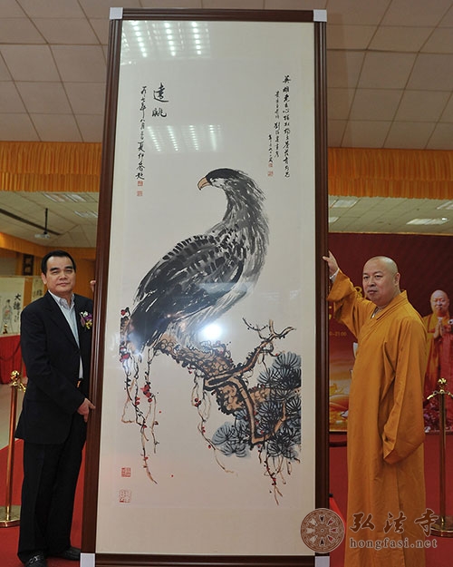 印顺大和尚及黄日明居士为大众展示刘海粟先生的精彩画作远眺