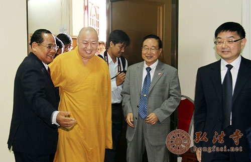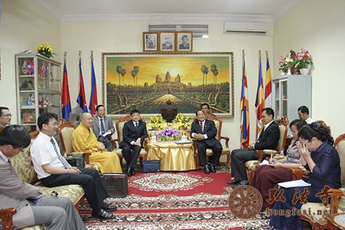 弘法网柬埔寨讯:2014年5月10日,受柬埔寨宗教部的邀请,由中国国家宗教事务局陈宗荣副局长率代表团一行抵达金边,对柬埔寨进行为期五天的正式访问。中国佛教协会副会长、海南省佛教协会会长、尼泊尔中华寺、深圳弘法寺方丈印顺大和尚作为代表团成员参与此次会谈,受到了柬埔寨宗教界的热烈欢迎。