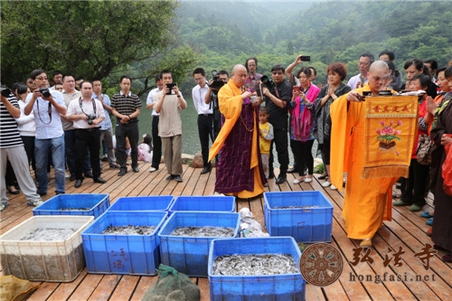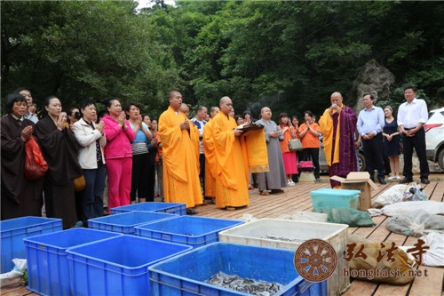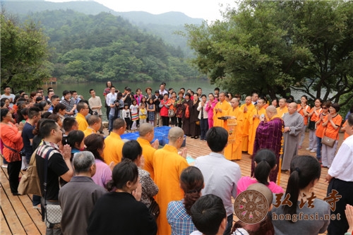 弘法网讯:2014年5月25日,湖北大洪山白龙池隆重举行了放生法会。中国佛教协会副会长、海南省佛教协会会长、湖北省佛协名誉会长、随州大洪山大慈恩寺及深圳弘法寺方丈印顺大和尚亲临主法,祈愿世界和平,国泰民安,风调雨顺。数百名十方信众及香客随喜参与了本次活动,共沾法喜,无不赞叹放生之殊胜功德。