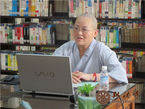 弘法网讯:2014年5月26日,弘法寺图书馆如期举行了第十五期静心读书会。其主讲人是现任深圳佛协副会长兼秘书长印盛法师(比丘尼),主题为“上本下焕恩师对我的三个嘱咐”。