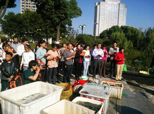 2013年10月5日(农历九月初一)弥陀盐城佛友放生组首次放生法会在盐渎公园西北角广场举行。此次法会由盐城市佛教协会副会长、东台弥陀寺住持本源法师主法。上午吉时,一百多名居士护法聚集在公园河畔参加法会,场面欢喜殊胜。