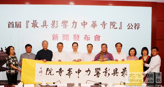 楼宇烈(左四)宣布首届“最具影响力中华寺院公荐”活动正式启动 (摄影:张文杰)