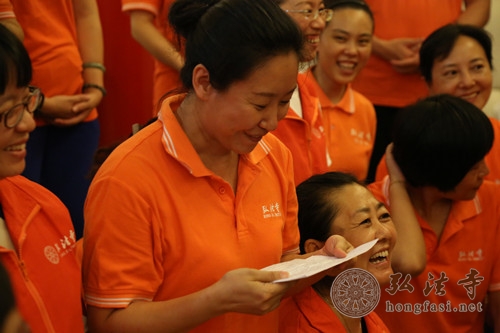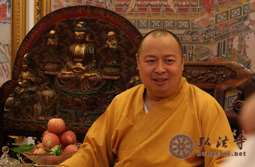 印顺大和尚于弘法寺接待厅接见了协会的义工代表们,他欢迎义工们的到来,赞叹他们护持佛教的发心和付出。大和尚开示说,弘法寺在大家的护持下环境越来越好,弘法活动也越发精彩多样,弘法寺义工成为了“全国品牌”。为了回馈义工们,弘法寺开办了系统的学习培训课程,如弘法寺佛学院的居士培训班(21天)、弘法寺义工培训班、八关斋戒等,希望义工们不仅要培植福报,更要增长智慧,最重要的是把佛法应用于日常生活中。印顺大和尚勉励义工们以本焕老和尚为榜样,他说老和尚每天早上三点到七点,晚上八点到十点一直不间断持诵《普贤行愿品》,希望大家要时刻记住老和尚所示现的榜样的力量,每天坚持完成定课,进而规范自己的言行举止。本焕老和尚成就了无尽微妙庄严世界,在座的每一位作为老和尚的弟子,也要发心生生世世追随老人家,成就自己的世界。