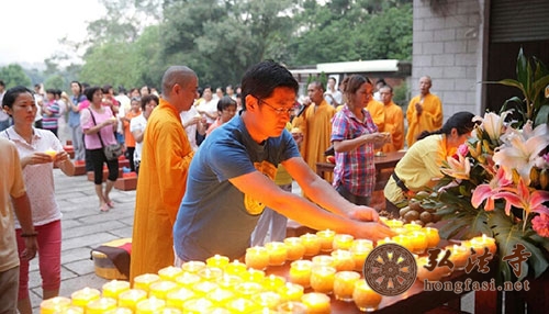 下午,极乐寺常住和来自弘法寺佛学院实习学僧及居士、信众共同点燃象征着智慧、吉祥之灯。