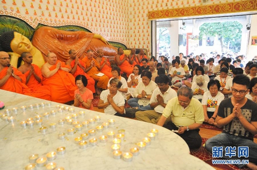 佛教在线海外讯 2014年7月20日,在马来西亚吉隆坡,僧侣和民众为马航MH17航班祈福。当日,马来西亚一家佛教团体为发生空难事故的马航MH17航班举办一场祈福法会。(图:张纹综 文:新华网)
