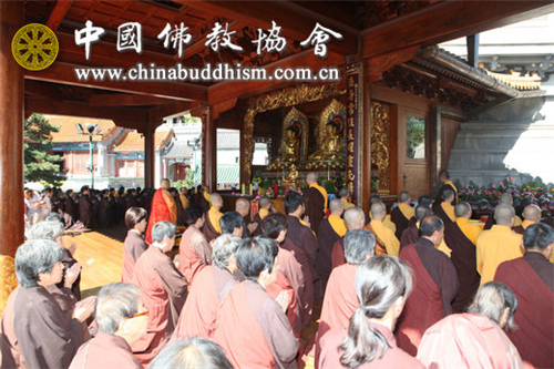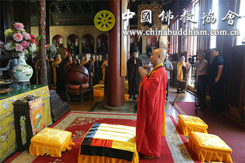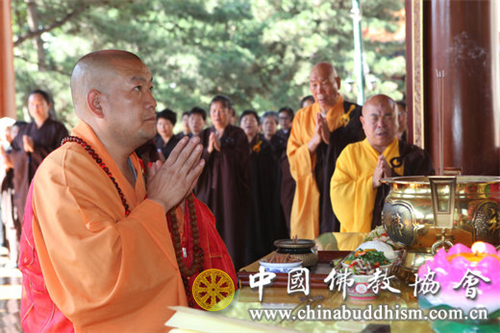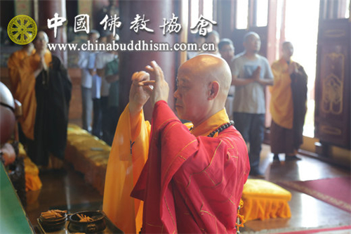 中国佛教协会驻会副会长、北京广济寺住持演觉法师拈香主法