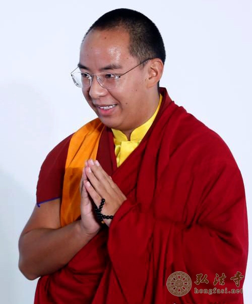 班禅生于1990年,5岁坐床,20多年来一直刻苦修行,佛学造诣日益精深,为超过150万信众摸顶赐福,深受僧俗信众的爱戴。主持人不禁问:“您是一个充满活力的年轻人,却浓缩了2500年的佛教精华,让人感到穿越……”“90后”,主持人话未说完,班禅即“调皮”插话,引现场会心笑语和掌声。