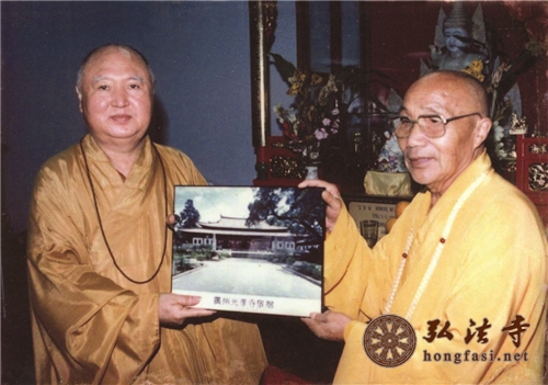 本老每到香港弘法时,定会到香港西方寺与永惺长老会面。永惺长老亦每年都到弘法寺拜访本焕长老。佛门“二老”的深厚友谊令人感动。