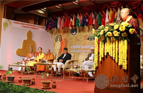 2560年过去了,在佛陀与我们的漫长岁月中间,世界发生很大的变化,多少兴旺,多少沧桑,然而不变的是佛陀留给我们的慈悲与智慧。这两样珍宝在这个纷扰的世界里尤为珍贵,今天的盛会是一场信仰的盛会。伟大的佛陀为我们指出了一条离苦得乐的解脱之路,他说:“诸恶莫作,众善奉行,自净其意,是诸佛教。”这个定义非常简单,却道出了成佛的基本要求,那就是“为善去恶”。这一主张,几乎适用于世界上所有的文明体系。正因为认同这高尚的信仰,正因为感念佛陀伟大的胸怀,正因为渴望加深中尼两国的友谊,中国接受了由联合国开发署、联合国教科文组织、尼泊尔王国政府组建的蓝毗尼开发委员会和世界佛教联谊会的邀请。1986年,在加德满都召开的世佛联十五届大会上,中国全国人大副委员长、中国佛教协会名誉会长班禅大师代表中国承诺在蓝毗尼建立一座寺院,这就是“中华寺”的由来。