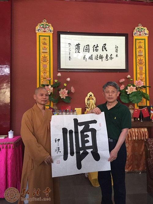 弘法网尼泊尔讯:2016年6月15日,上海市委常委、上海海外联谊会会长沙海林 一行赴尼泊尔考察地震周年以来百姓生活和援建情况,专程来中华寺朝访,受中国佛教协会副会长、尼泊尔中华寺方丈印顺大和尚委托,中华寺监院中勇法师以及全体僧众热情接待了考察团一行。
