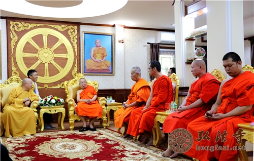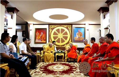 受老挝老中合作委员会邀请,中国佛教协会副会长、海南省佛教协会会长、深圳弘法寺方丈印顺大和尚一行前往老挝进行友好访问,受到老挝佛教协会主席摩诃温·丹隆本僧王的热情接待。