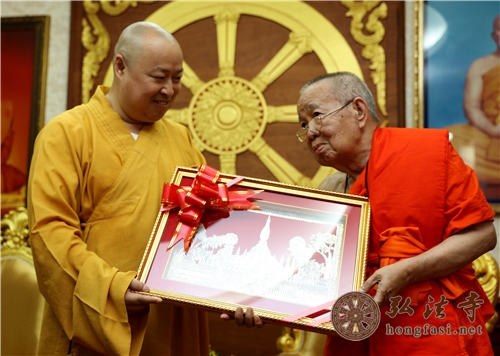 丹隆本僧王已经86岁了,身体略有些弱,但见到印顺大和尚,兴奋之情,溢于言表。他说,印顺大和尚这些年不辞劳苦,与南海多个佛教国家广结善缘,促成南传佛教与汉传佛教的深入交流,功德无量。