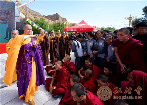 我是第一次来到青海。今天是教师节,是感恩老师、导师和先师的日子。我看到,遍地的格桑花今天仿佛开得格外鲜艳美丽。我们在这个美好的日子里来纪念伟大的先师八思巴法王,纪念德高望重的十世班禅大师,内心里充满无限的欢喜。我们虽然分别来自不同的地方,穿着不同的服装,说着不同的语言,但是我相信,我们的心是一样的心,我们的愿是一样的愿,我们对众生的慈悲和爱,也是没有任何差别的。我们对噶尔哇•阿旺桑波活佛殚精竭虑,付出十年的辛苦,重建世界吉祥万佛塔这样一份大功德,也同样发自内心的由衷赞叹!为这座佛塔的重建竣工和圆满落成举行开光典礼,这只是一个总结、一种庆贺的形式,但是对噶尔哇•阿旺桑波活佛在重建佛塔过程中每一步的艰辛,还有重建过程中所承受的那些不为人知的痛苦,以及噶尔哇活佛曾经经历的心路历程,却并不是每个人都能够想象和理解的。