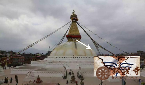地震时幸存下来的博达纳大佛塔,主体建筑略有开裂