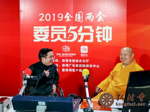 2019年全国两会《委员5分钟》节目,特邀请全国政协委员、深圳弘法寺方丈印顺大和尚走进北京演播厅。