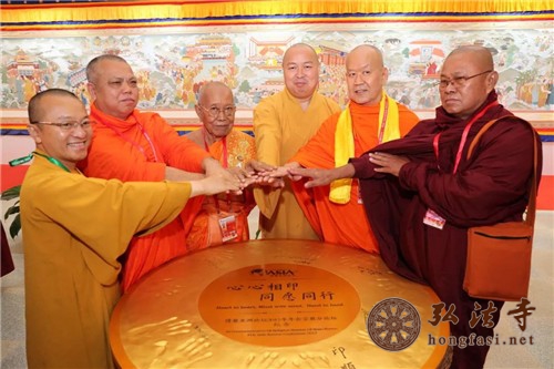 ● 2016年10月,澜湄六国25个城市市长相聚海南三亚南山寺,在印顺法师主持的祈福法会上,共同为南海地区的和平稳定及苍生福祉祈愿。