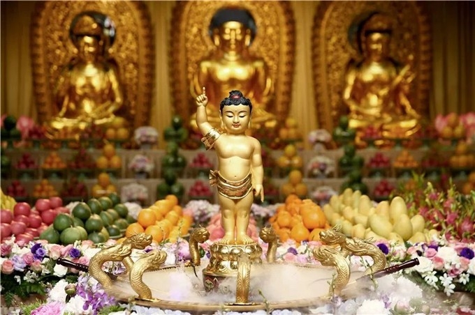《过去现在因果经》记载,摩耶夫人游蓝毗尼园,行至无忧树下,诞下悉达多太子。难陀和伏波难陀龙王吐清净水,灌太子身。这一天适逢中国农历四月初八,即为佛诞日。四众弟子为缅怀佛陀恩德,于每年此日举行浴佛庆典,仿效当时情景为释迦太子像沐浴,望藉着浴佛仪式,来清净我们自身、洗涤我们的烦恼妄心,去妄离执,时时以承续佛法慧命为业,让佛的慈光永照人间。是故,佛诞日又称“浴佛节”。